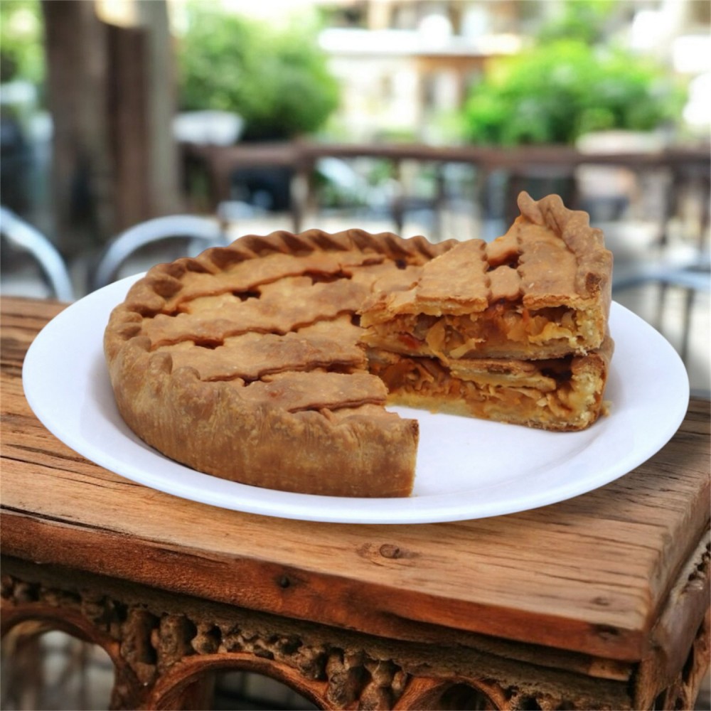 Склад: листкове тісто, капуста, морква, цибуля, томати, спеції.